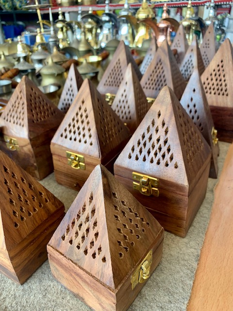 Took us a wee while to figure it out, but then it came to me… The gulf arabs LOVE perfume. They’ve been trading in it for centuries, probably millennia. You only have to pass a woman OR a man on the street to be enveloped in a cloud of a delicious, enticing and exotic scent. Local ladies have often told me how you are meant to put it in your clothes… the emphasis on “in” becomes apparent when you look at these crazy coat hangers…. you place your abaya (womens) or kandora (mens) over the hanger – and if my assumption is correct – one of these guys (below) UNDER the hanger, and let the scent of the burning oud permeate into your clothing. Genius huh?!